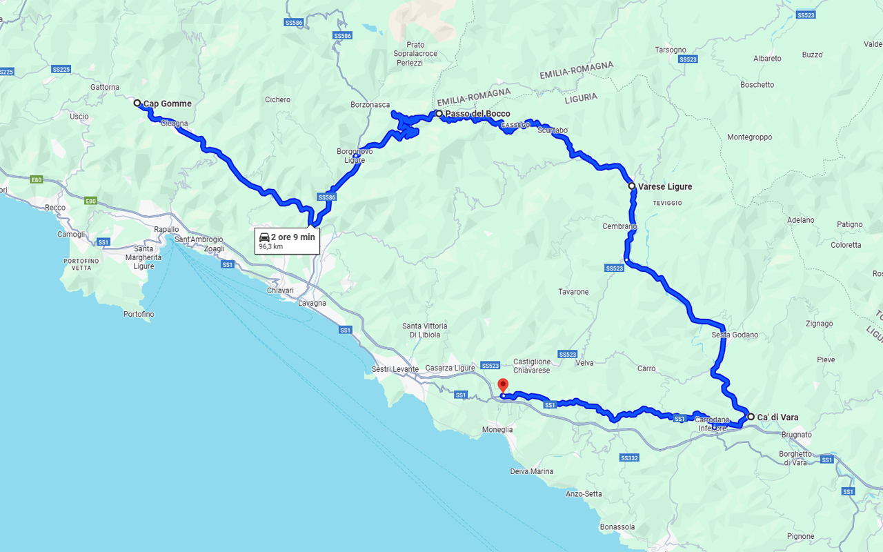 MOCONESI->BRACCO san colombano, passo del bocco, scurtabò, varese ligure, ca di vara, passo del bracco up to camping l'oasi (100% asphalt)