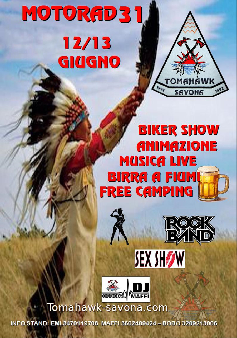 Two-day motorbike rally organised by Tomahawk Savona with live music, entertainment, biker show, DJ set, food area and free tent camping for bikers.