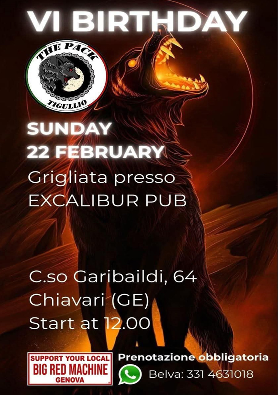 Barbecue event to celebrate the The Pack Tigullio club's sixth birthday. Reservations are welcome.