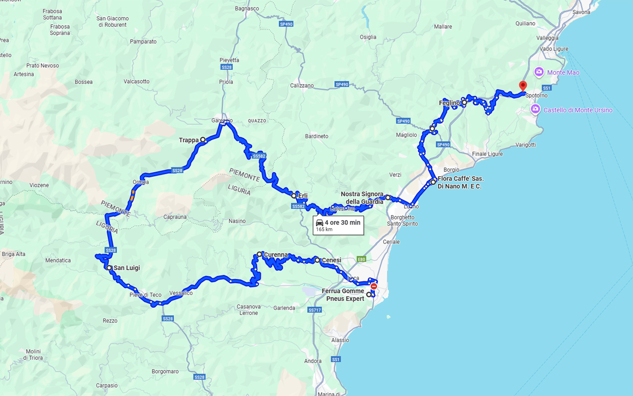ALBENGA->SPOTORNO cenesi, curenna, pieve di teco, ormea, garessio, balestrino, loano, tovo s. giacomo, calice ligure, feglino (100% asphalt)