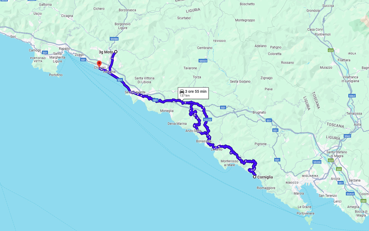 GRAVEGLIA -> CHIAVARI aurelia, bracco, castagnola, levanto, corniglia and back (100% asfalto)
