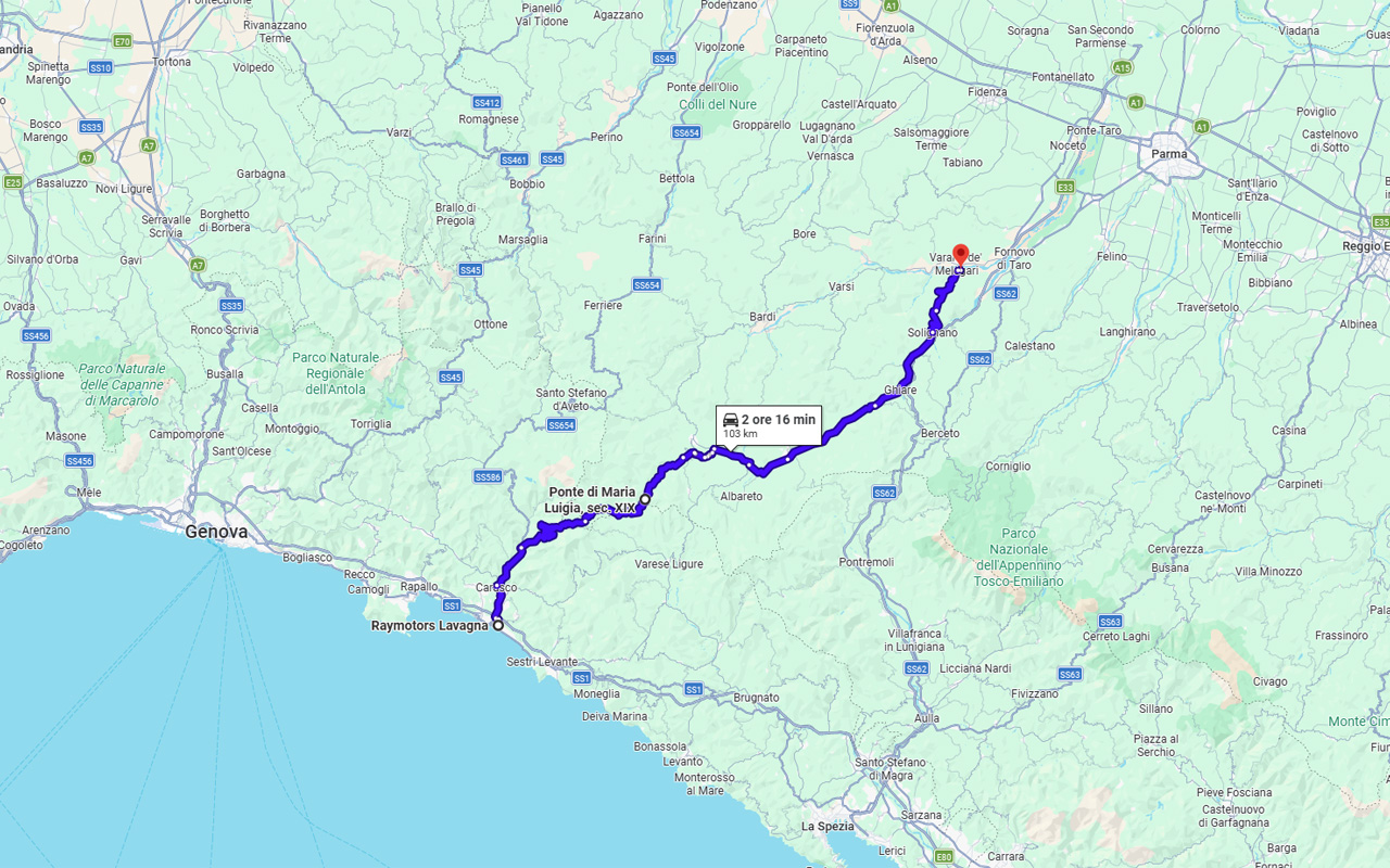 SARZANA -> S.STEFANO MAGRA fosdinovo, cerreto, lagastrello, monchio delle corti, beduzzo, calestano, cisa (100% asphalt)